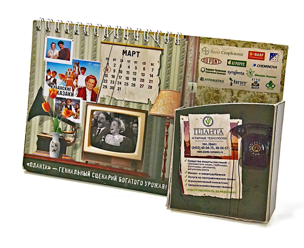 - Удобный в использовании, компактный и эстетически привлекательный календарь, который можно применять, среди прочего, в качестве подарка для партнеров или презентационного материала.