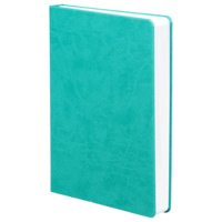 Ежедневник с твердой обложкой, выполнен из материала Latte, цвет морской волны II, дополнен ляссе в цвет обложки.