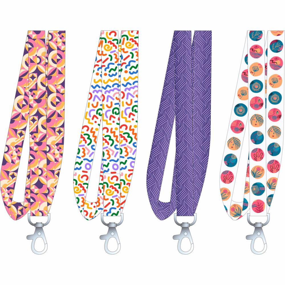 Полноцветная сублимационная печать на ленте с двух сторон и карабин входят в стоимость изделия.