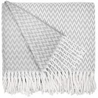 Плед Sagunt с ненавязчивым зигзагообразным узором и аккуратной бахромой подарит мгновения уюта и радости, порадует своим нежным дизайном и окутает теплом.