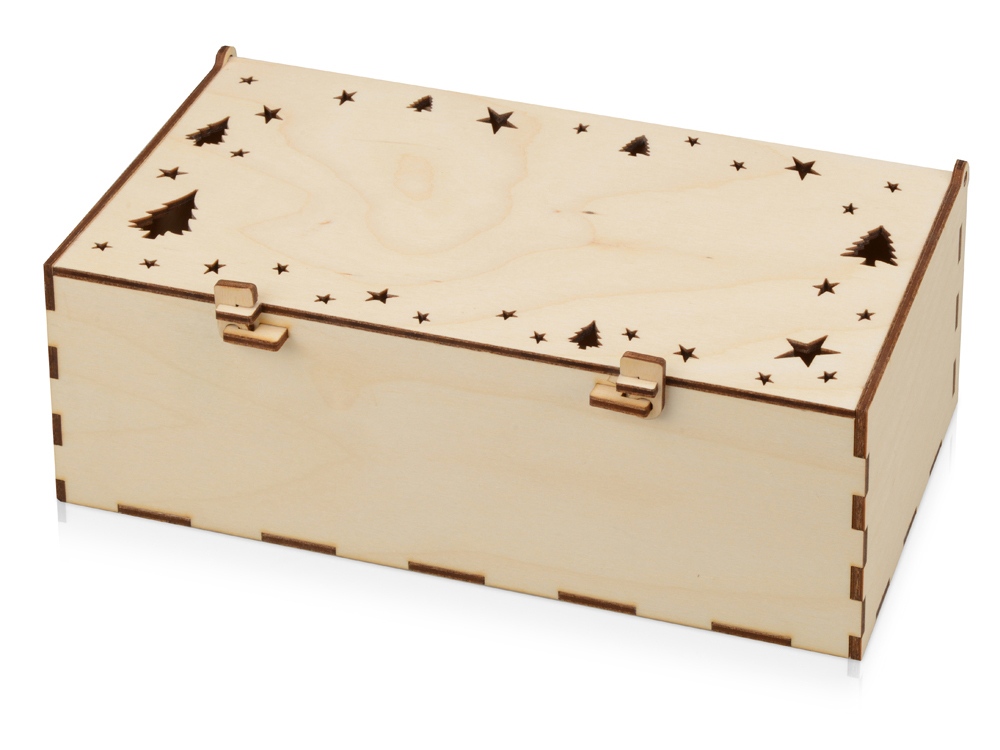 Подарочная коробка в виде небольшой шкатулки подходит для нанесения информации или логотипа на крышке. Орнамент в виде звездочек на крышке украсит ваш подарок, а если внутрь положить несколько электронных свечей, то тени от света свечей оставят причудливые узоры на стенах и потолке. Оригинальная подарочная упаковка Шкатулка - отлично подойдет как для новогодних подарков, так и для презентов по любому другому поводу. Гравировка (CO2 лазер) (Без чернения) на данный товар осуществляется бесплатно. Оплачивается только настройка оборудования в размере 1100 рублей на весь тираж.