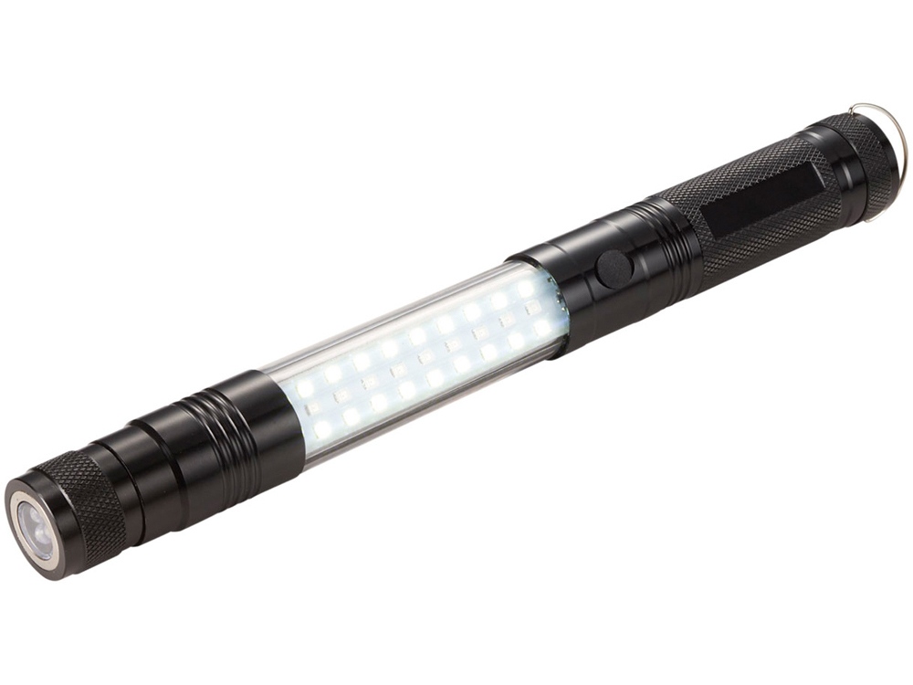 Телескопический фонарь с боковой лампой. Фонарик с выдвижным инструментом и боковой лампой. Магнит с металлический кольцом для фиксации. Боковой фонарь работает в трех режимах: белый свет, красный свет и красный мигающий свет. Телескопический инструмент в развернутом состоянии достигает максимальной длины 64 см и помогает находить мелкие детали в труднодоступных местах. Батарейки в комплекте вставлены. Упакован в коробку STAC. Алюминий. Гравировка (оптоволоконный лазер) (Без чернения) на данный товар осуществляется бесплатно. Оплачивается только настройка оборудования в размере 1100 рублей на весь тираж.